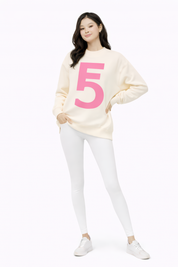 A cream fleece crewneck featuring the Fem Cartel “10 Within” symbol printed in pink ink, representing the belief that every woman already carries the power of a ten within herself.