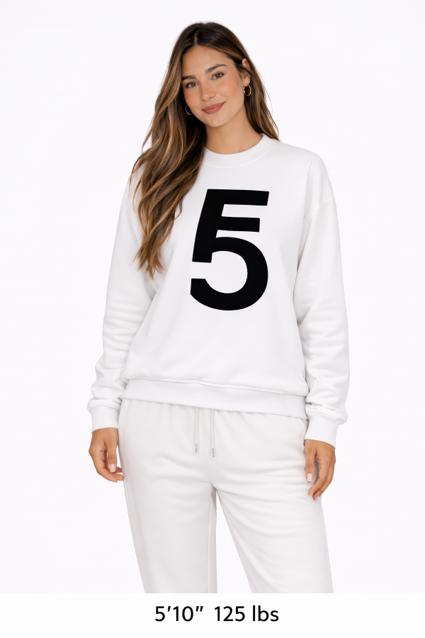 A white fleece crewneck featuring the Fem Cartel “10 Within” symbol printed in black ink, representing the belief that every woman already carries the power of a ten within herself.